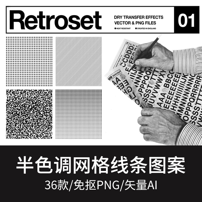 半色调波点线条纹理抽象复古网格纹理免抠PNG图案素材