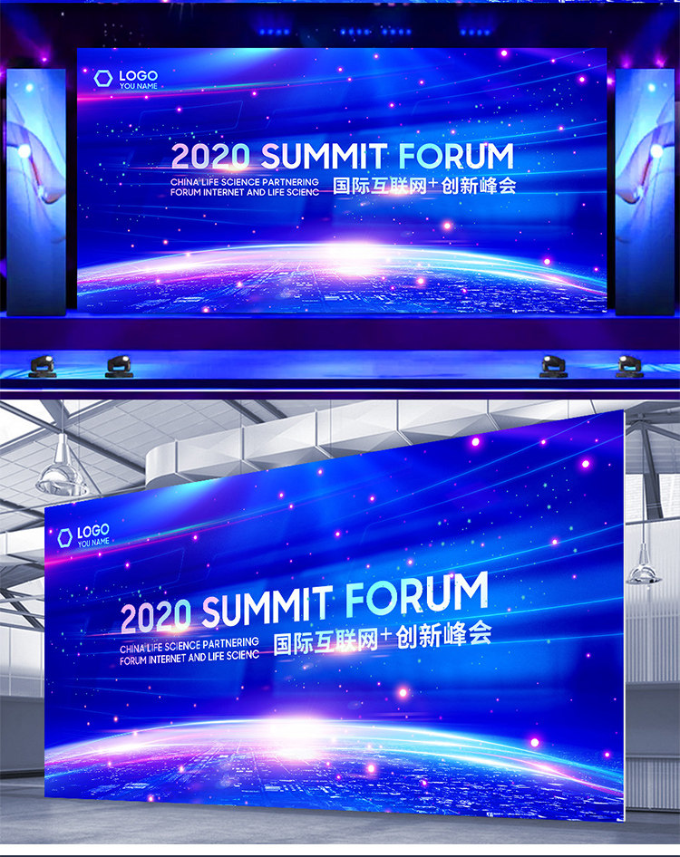 蓝色科技会议峰会发布会签到处舞台背景素材