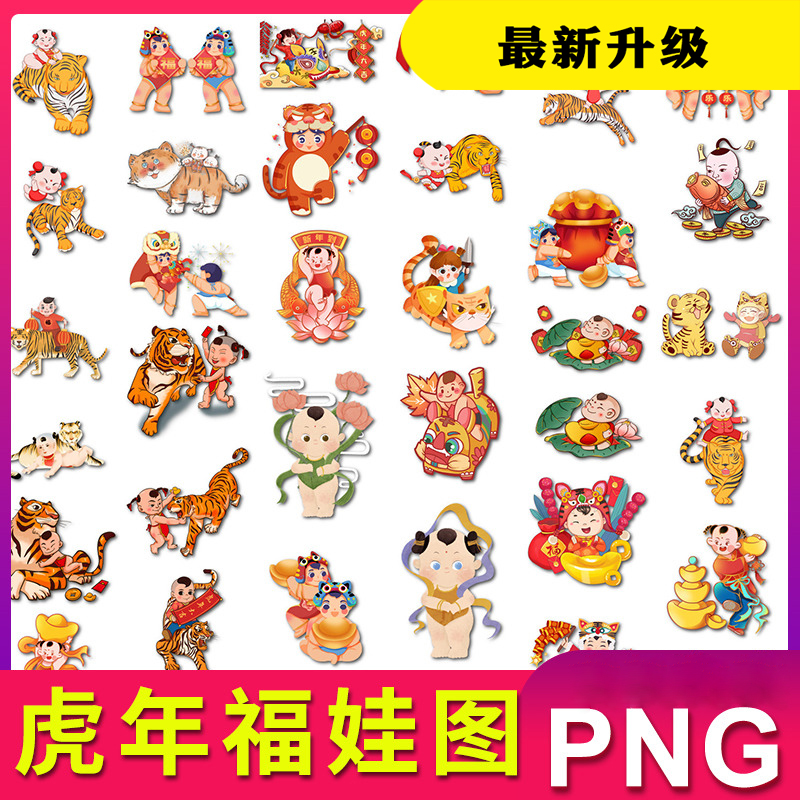 虎年福娃老虎娃娃卡通图案png透明背景素材